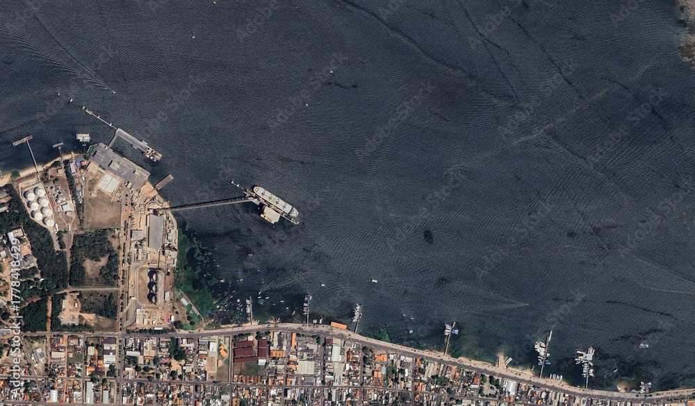 Satellite image of the Amazon River meanders in the Brazilian rainforest — aerial view of tropical river system and lush vegetation