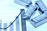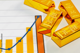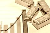 Growth chart with gold bars. Rising gold price concept. Selective focus.