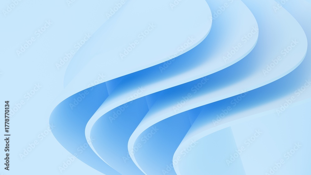 Abstract wavy curved 3d render. Blue soft layers of plastic with lines, folds, ruffles. Modern wallpaper, texture pattern.