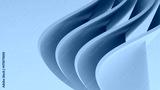 Abstract wavy curved 3d render. Blue soft layers of plastic with lines, folds, ruffles. Modern wallpaper, texture pattern.