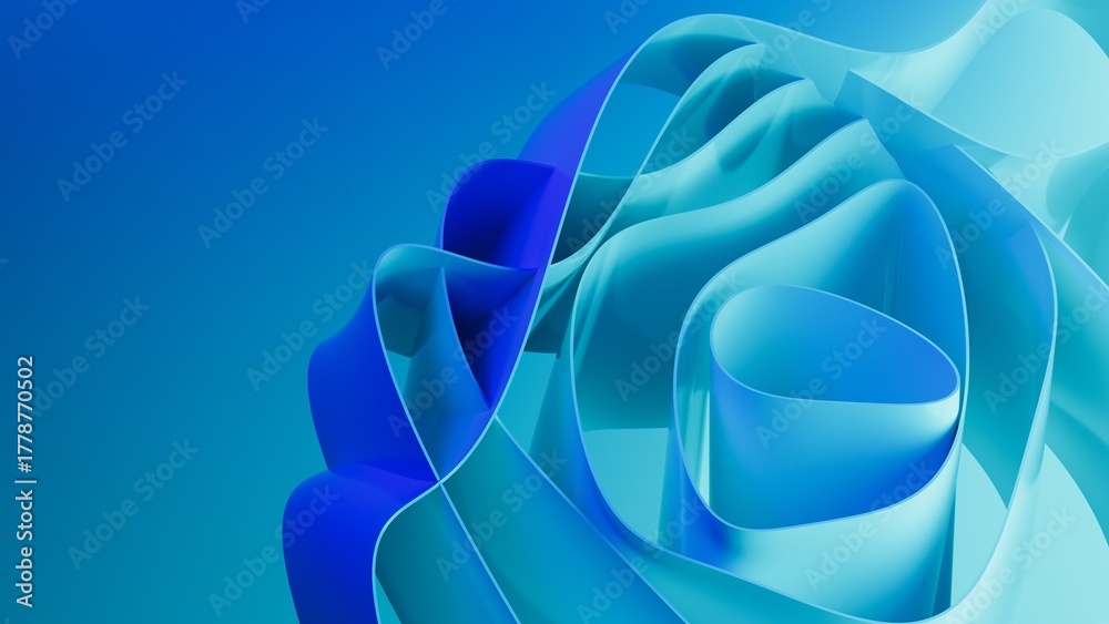 Abstract wavy curved 3d render. Blue soft layers of plastic with lines, folds, ruffles. Modern wallpaper, texture pattern.