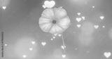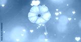 Floating stylized pink flower against pink gradient backdrop, with white heart-shaped bokeh lights