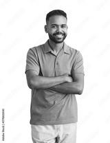 Portrait of handsome smiling young man with folded arms isolated transparent PNG, Joyful cheerful casual businessman with crossed hands studio shot