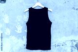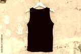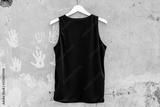 Sleek Black Tank Top Hanging Against Urban Distressed Wall Featuring Handprints