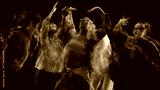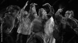Hip hop group performing in neon blur motion on stage. Concept of performing arts, creative branding, youth advertising, and fashion visual promotion.
