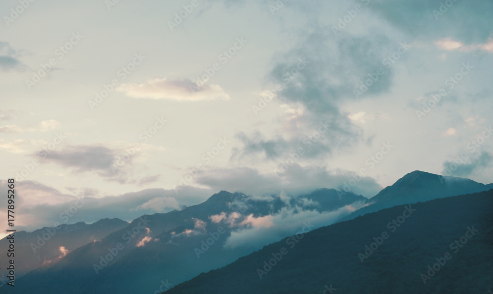 Mountain ridge in blue colors.