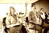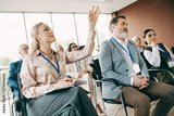 Professional team engaged in an educational seminar participating actively with colleagues in a collaborative learning environment