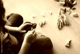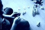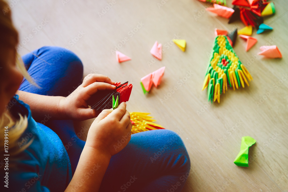 little girl making origami crafts with paper