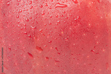 Texture of red apple with drops as background.