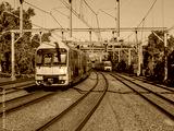 Passenger Train going through Summer Hill train station a suburban Sydney train Station NSW Australia