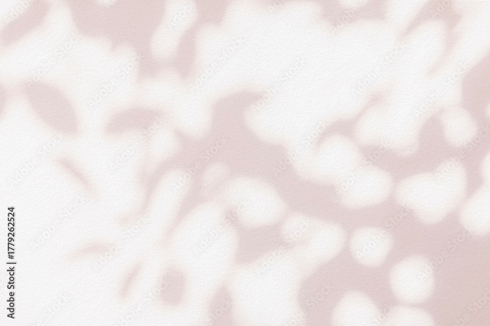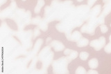 Light and shadow pink beige pastel abstract background. Natural leaves shadows and sunshine diagonal refraction on white wall texture. Shadow overlay effect foliage mockup, banner graphic layout