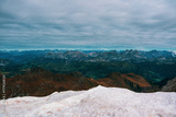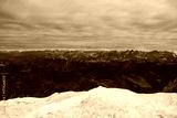 Panoramic view from the Marmolada glacier towards the Dolomites in South Tyrol, Italy.