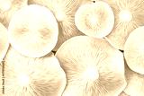 Seamless pastel mushroom pattern with soft pink, cream, and lavender tones. Detailed gills and organic texture, bright artistic background ideal for design and print projects