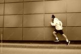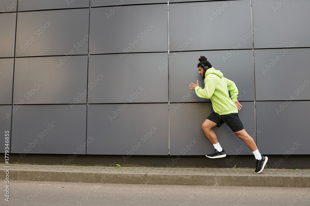 Energetic workout session of an athletic man in vibrant green hoodie outdoors