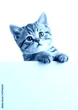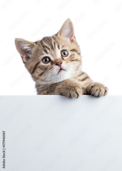Cat kitten hanging over blank posterboard for message