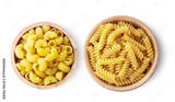 Macaroni in wood bowl Isolated on transparent png ( image from camera )