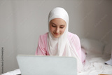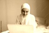 Muslim businesswoman working on laptop