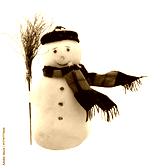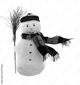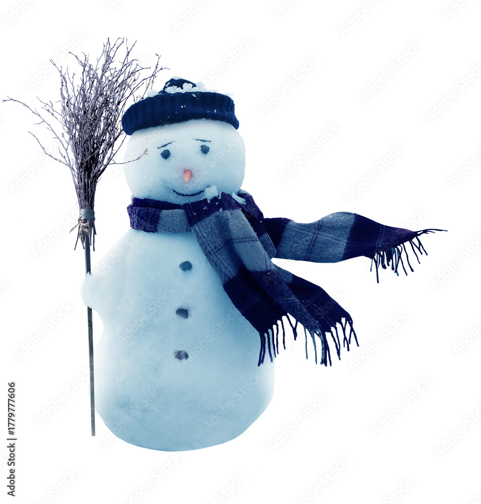 Cute snowman in a black hat and scarf isolated
