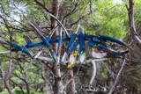 Wooden fish hanging from the trees
