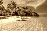 Tropical island beach landscape exotic shore coast. Tranquil closeup calm sea water waves with palm trees. Beautiful Panorama. Summer vacation, holiday amazing nature. Relax paradise, Maldives.