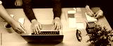 A dynamic workspace featuring a laptop and vibrant sticky notes, highlighting hands of individuals collaborating in a creative brainstorming session. SACTR