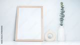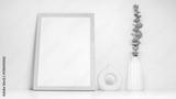 Minimal Home Decor Mockup with Blank Picture Frame and Modern Ornaments