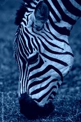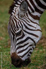 Cebra Común (Equus Quagga) Pastando en la Sabana de Kenia, África, con Detalle de su Pelaje a Rayas