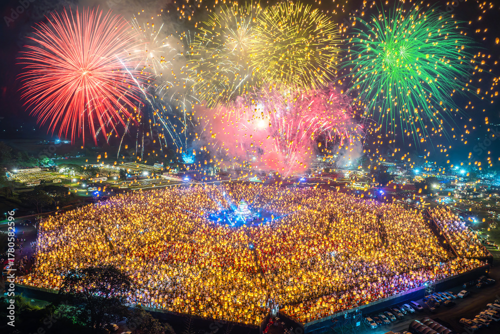 Aerial view of Sky lantern festival in Chiang Mai, Thailand