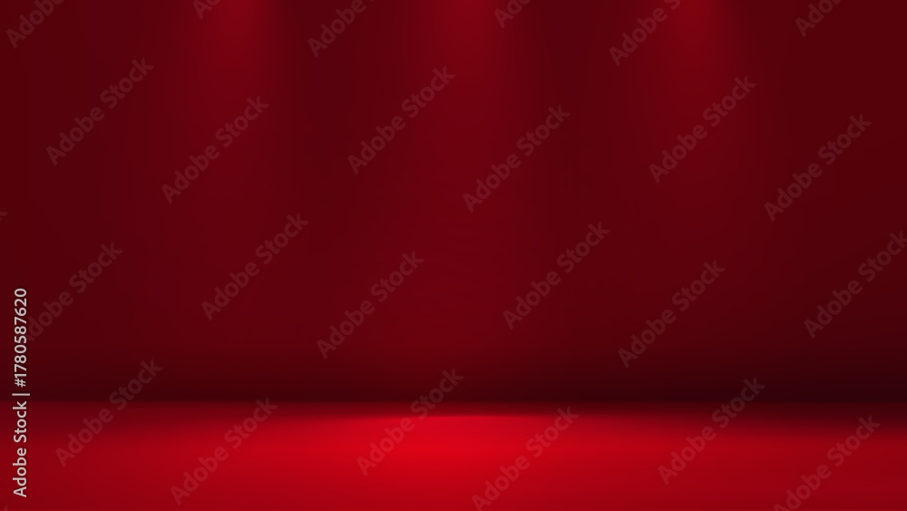 Red studio background. Abstract limbo podium studio room. Dark red gradient wall floor and spotlight scene. Showcase, promotion display. Mockup illustration New year, Christmas design