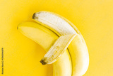 Concept of same-sex LGBT love, two bananas hugging on a yellow pastel background