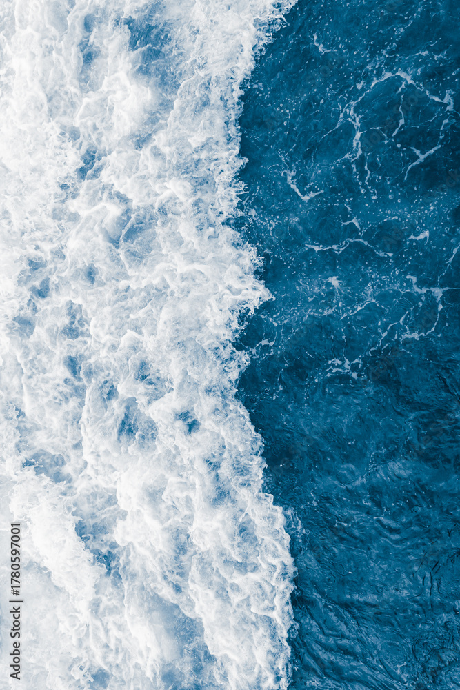 Dark blue sea ocean wave and liquid white foam