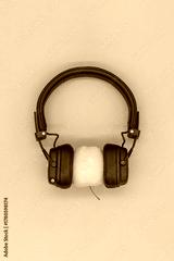 Yellow Apple in headphones listening to music, concept don't be a vegetable, listen to good quality music
