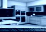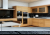 Modern Kitchen Countertop with Blurred Background.