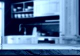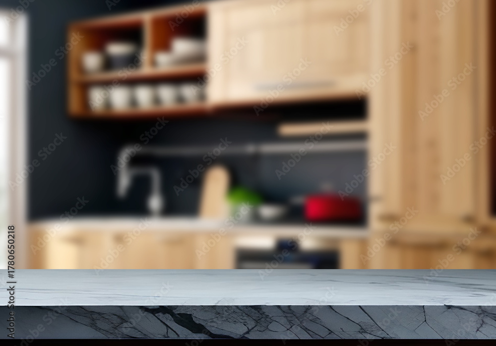 Modern Kitchen Countertop with Blurred Background.