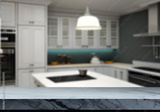 Modern Kitchen Countertop with Blurred Background.