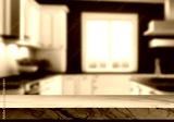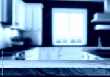 Modern Kitchen Countertop with Blurred Background.
