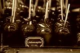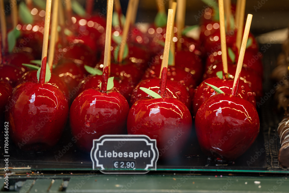 Salzburg, Austria - December 23, 2024: Liebesapfel (love apple) ornaments at Salzburg’s Christmas market