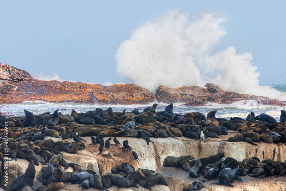 Seal colony among powerful waves - The seal colony at Cape Cross, on the atlantic coast, Duiker Island or Seal Island near Hout Bay Cape fur - South Africa