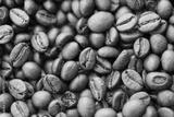 Coffee texture roasted beans from above soft light close up