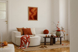 Stylish living room with neutral sofa, dried flowers, and natural light. Warm autumn composition blending simplicity and comfort.