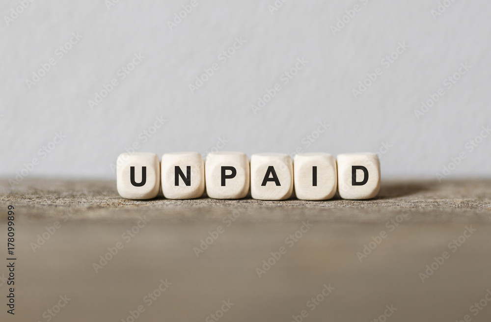 Word UNPAID made with wood building blocks