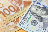 Canada, United States, money. Financial and business concept. American and Canadian dollars. Trade, exchange rate, closeup