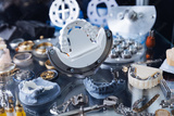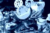 Exhibition examples of dental prostheses, titanium crowns and platforms for pins made on mini CNC milling machine