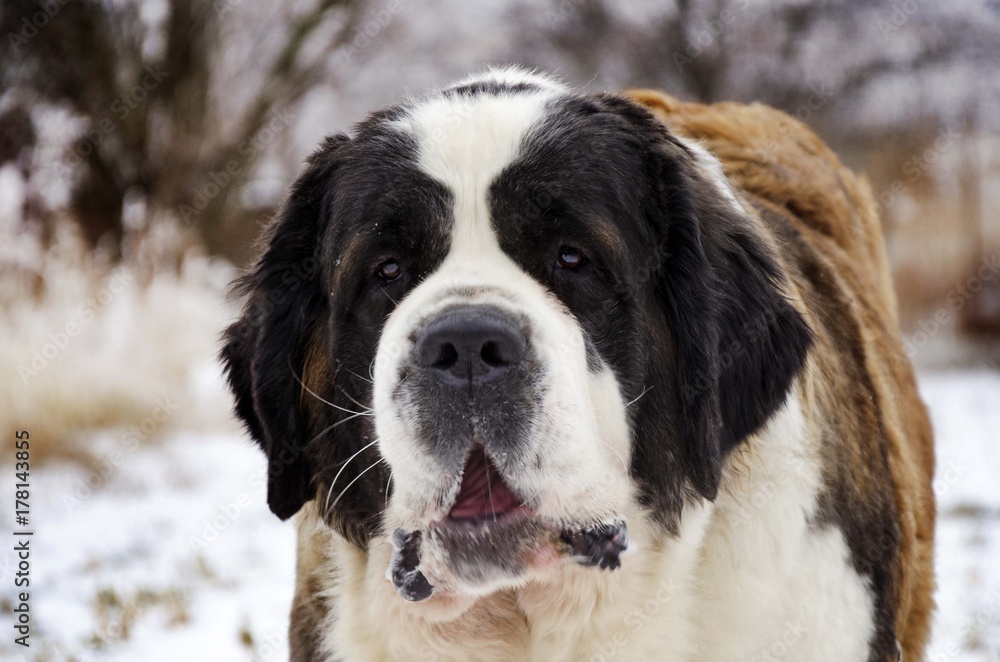 saint bernard dog on snow