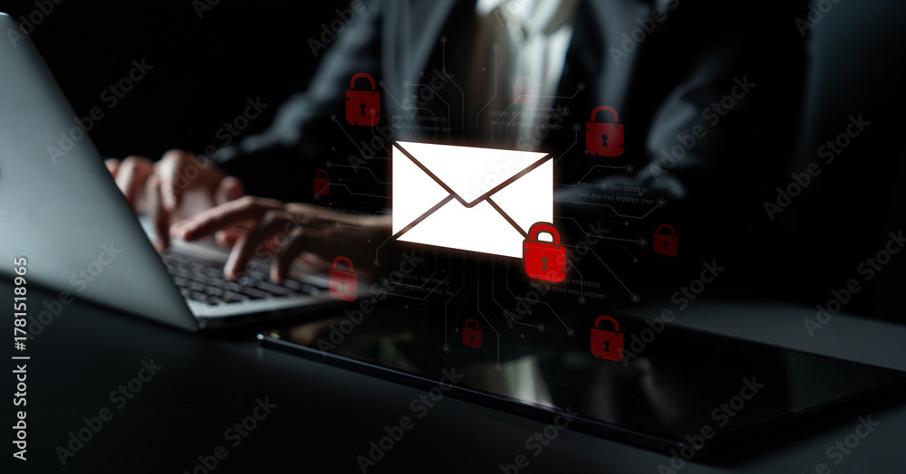 Concept of email security and cybersecurity for confidential communication. Message encryption ensures data privacy and protection from unauthorized access, spam, or phishing threats. Fermion