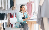 Adult asian woman tailor contemplative design clothes working in fashion designer studio