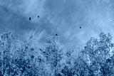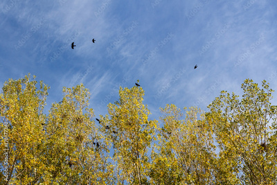 Colonia de Grajas en chopera. Corvus frugilegus.