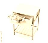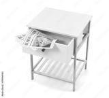 Bedside table with newspaper on white background