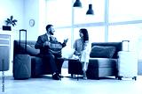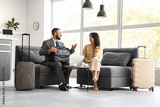 Young business people talking while waiting for their flight in airport lounge