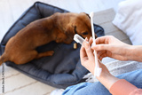 Young woman with pet toothbrushes in bedroom, closeup